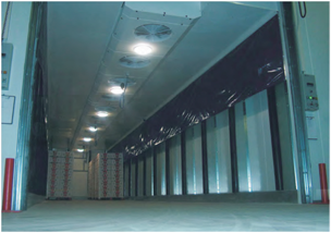 A CA store is constructed to be gas tight, so it can retain the low oxygen atmosphere needed for the long term storage of many fruits. Ethylene scrubbers are also used to keep ethylene concentration at a low level. |
